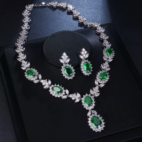 High-End Banket Smaragd Ketting Sieraden Set Luxe Feest Bruids Sieraden Oorbellen